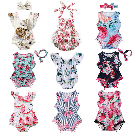 Infant Newborn Baby Girls Romper Summer Baby Clothes Flower Watermelon Print Tassel Jumpsuit Playsuit Sunsuit Baby Girl Costumes