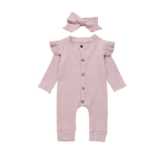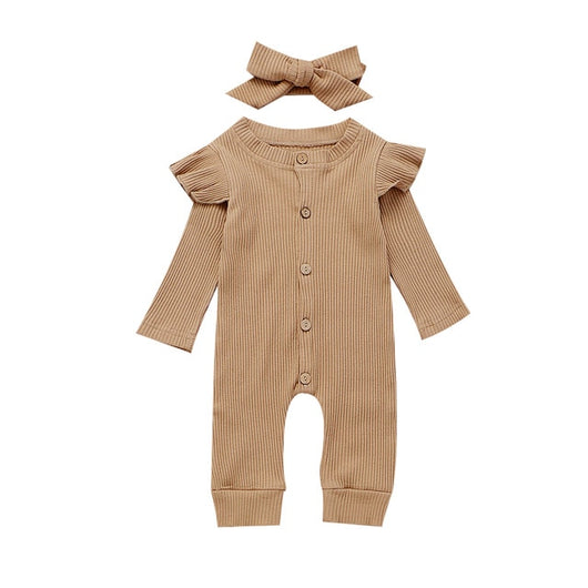 Newborn Infant Baby Girl Boy 2Pcs Autumn Clothes Set Knitted Romper Jumpsuit Outfits Ruffles Long Sleeve Autumn 4 Color 0-24M