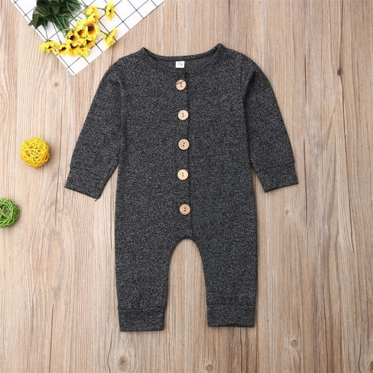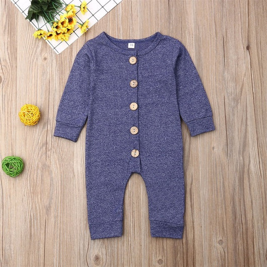 Pudcoco Newborn Baby Boy Girl Clothes Solid Color Cotton Button Romper Jumpsuit One-Piece Outfit Playsuit Autumn Clothes