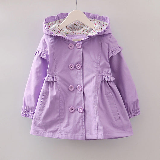Autumn Clothes 2019 New Kids' Female Babies Korean Westernized Blouse Princess Girls' Windswear Single Breasted Pure Color