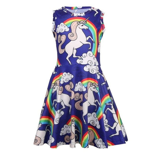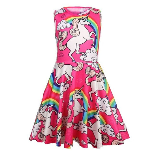 Cartoon Rainbow Pony Girl Dress A-line Dress Princess Party Dress More color Baby Girls Clothes sleeveless Kids' Clothes 4Y-8Y