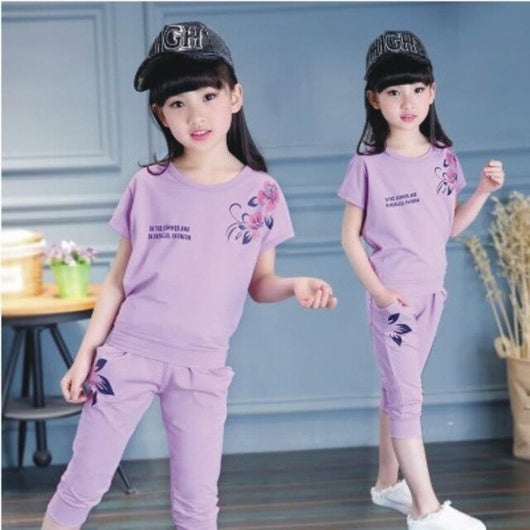Girls' Summer Clothes 2019 New Kids' Suits Summer Sports Short Sleeves Girls Set