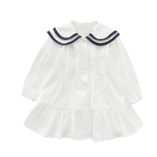 New Autumn 1-7T Baby Girl Dress Casual Fashion Lovely Toddler Girl Clothes Solid Color Long Sleeve Shirt Dress Kids' Clothing #m