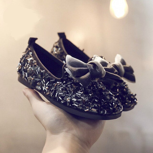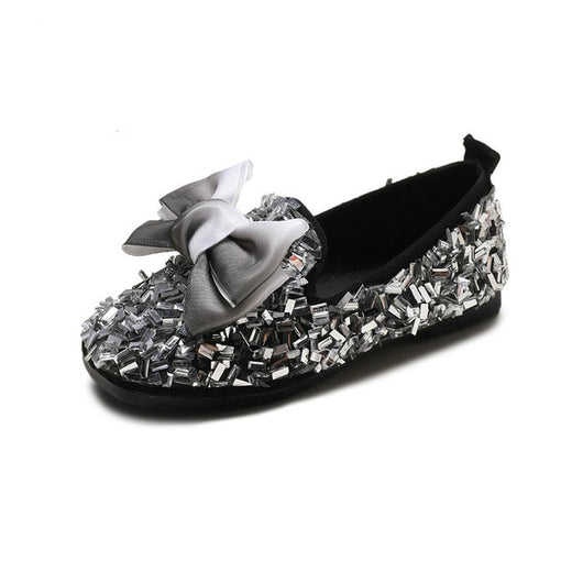 Autumn 2019 New Kids' Leather Shoes with Butterfly Knot Princess Shoes Big Bowknot Girls Flats with Sequins Flat Heel Slip On